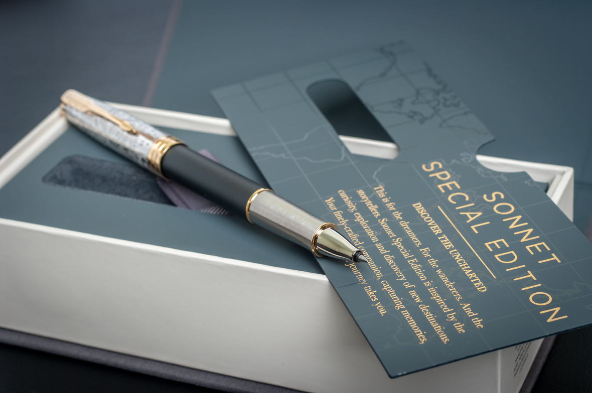 Ручка роллер Parker Sonnet Special Edition 2018 Impression Matte Black GT от официального дилера Parker в Петропавловск-Камчатске. Вы можете дополнительно заказать гравировку, которая подчеркнет Вашу оригинальность и придаст памятность статусному подарку. Все ручки Паркер поставляются в фирменном футляре.